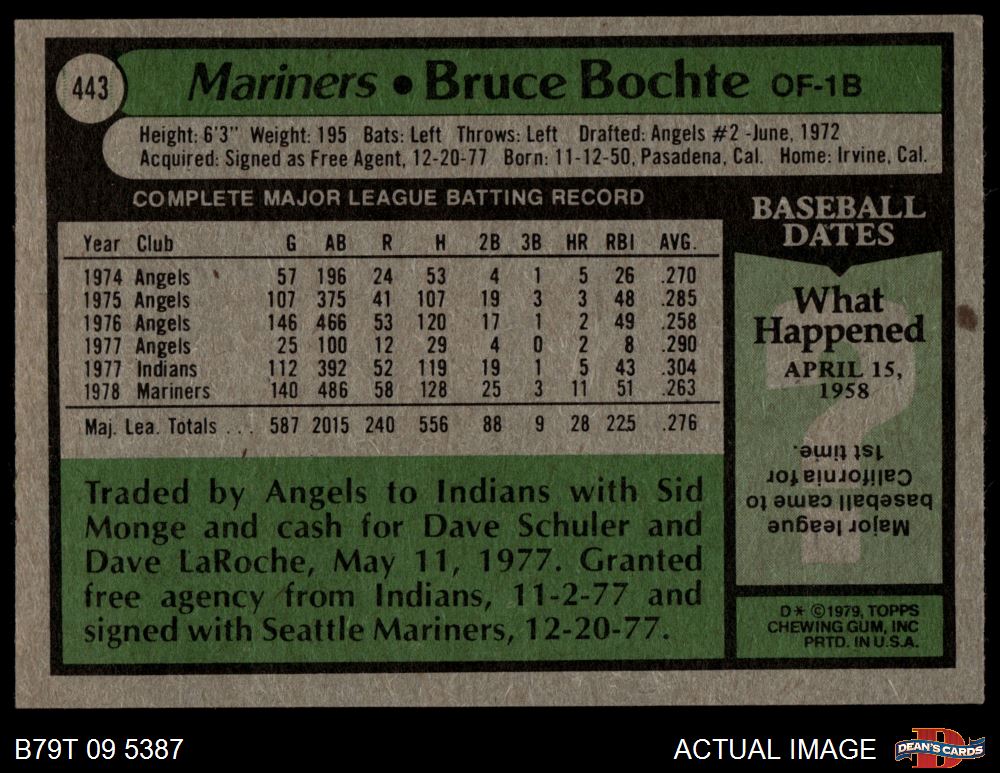 1979 Topps #443 Bruce Bochte 7.5 - NM+