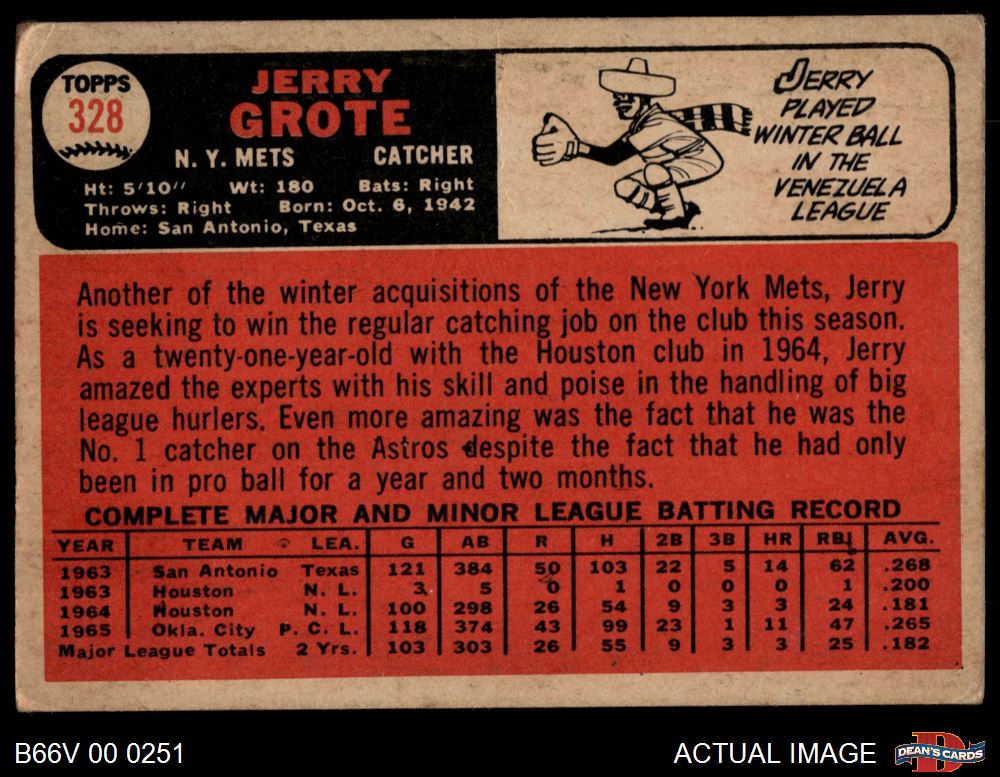 1966 Topps Venezuelan #328 Jerry Grote 3 - VG