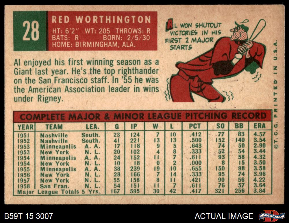 1959 Topps #28 Red Worthington 4 - VG/EX