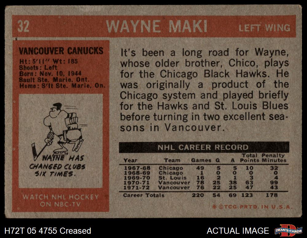 1972 Topps #32 Wayne Maki Front Thumbnail