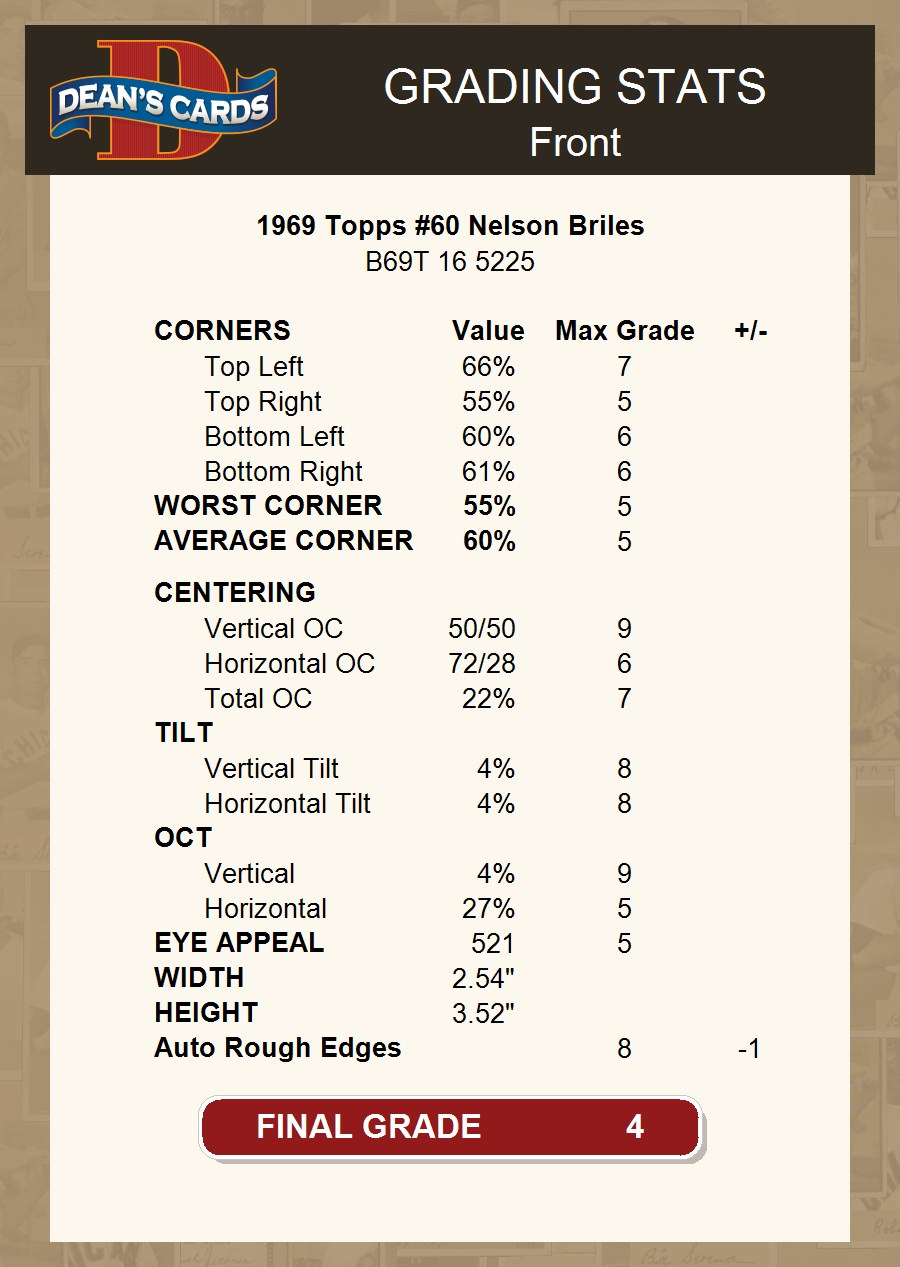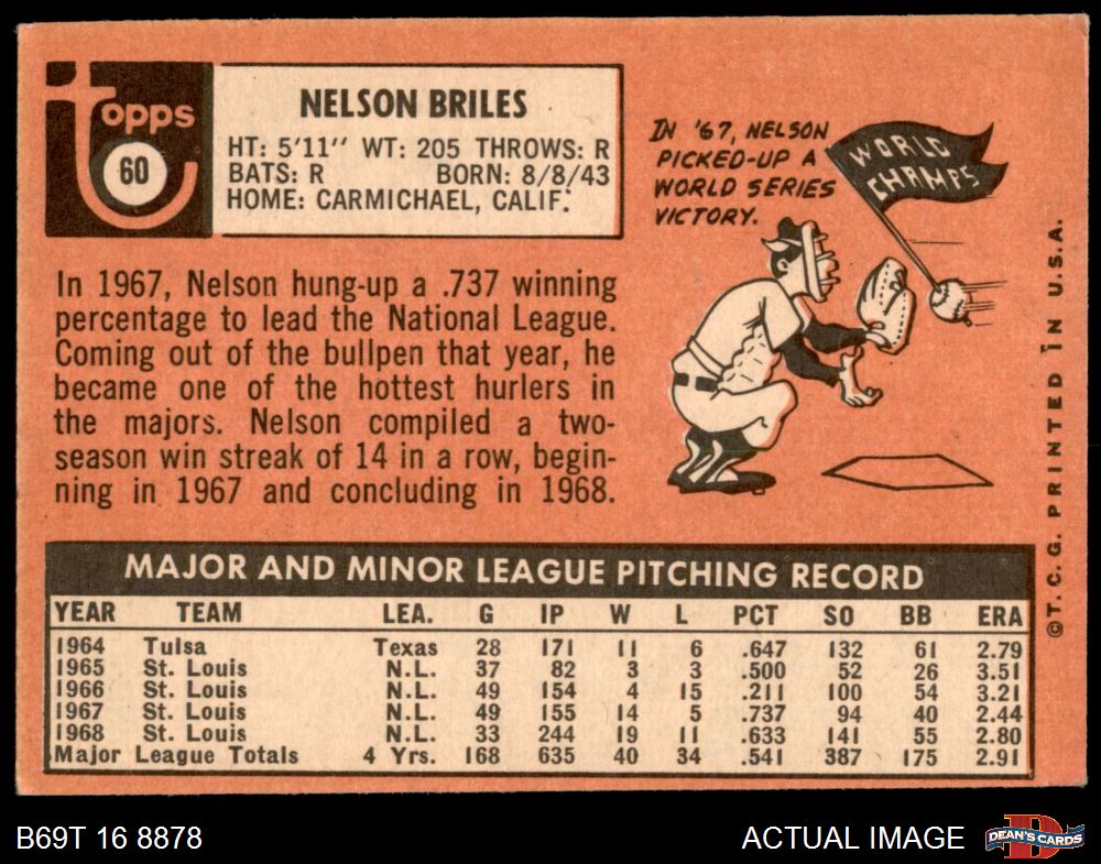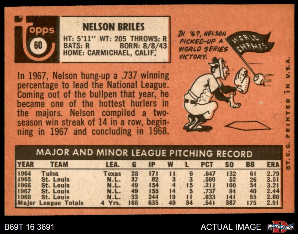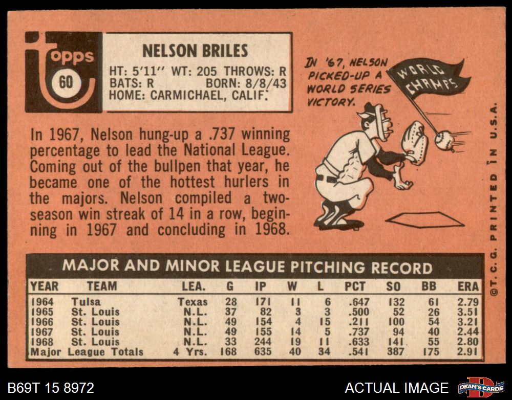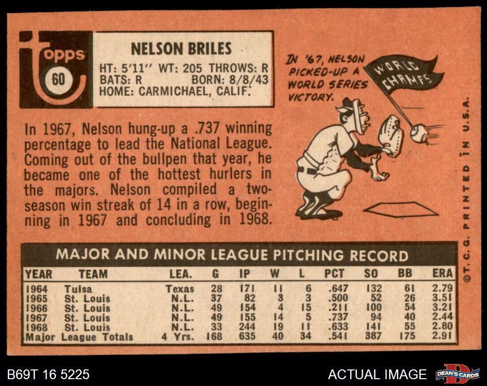 1969 Topps #60 Nelson Briles 4 - VG/EX