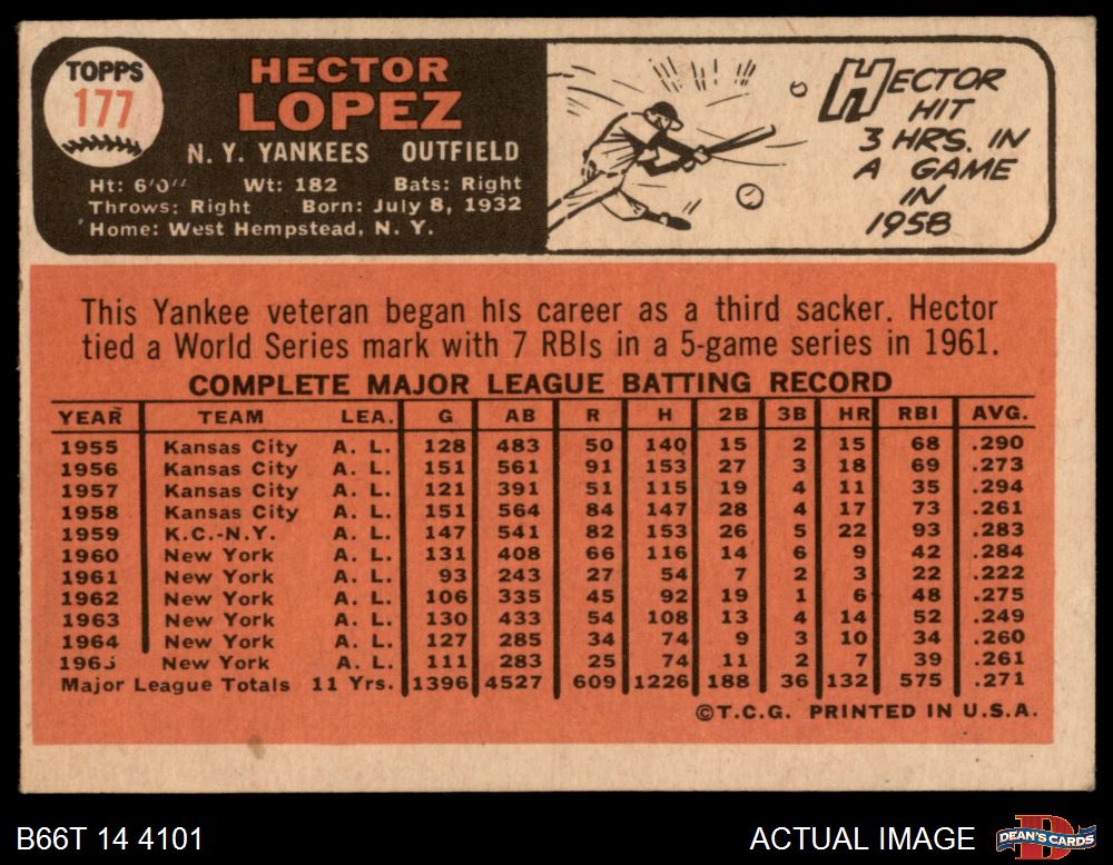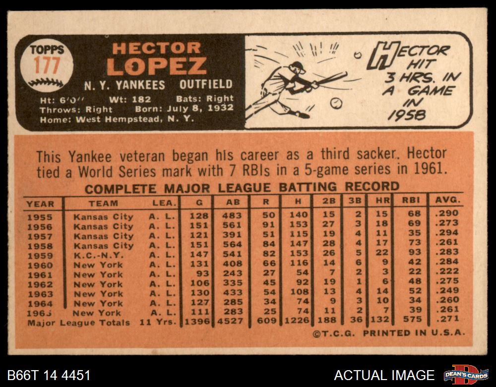 1966 Topps #177 Hector Lopez 3 - VG