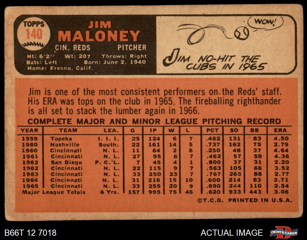 1966 Topps #140 Jim Maloney 1 - POOR