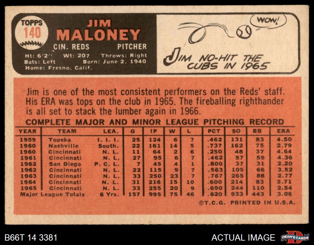 1966 Topps #140 Jim Maloney 4 - VG/EX