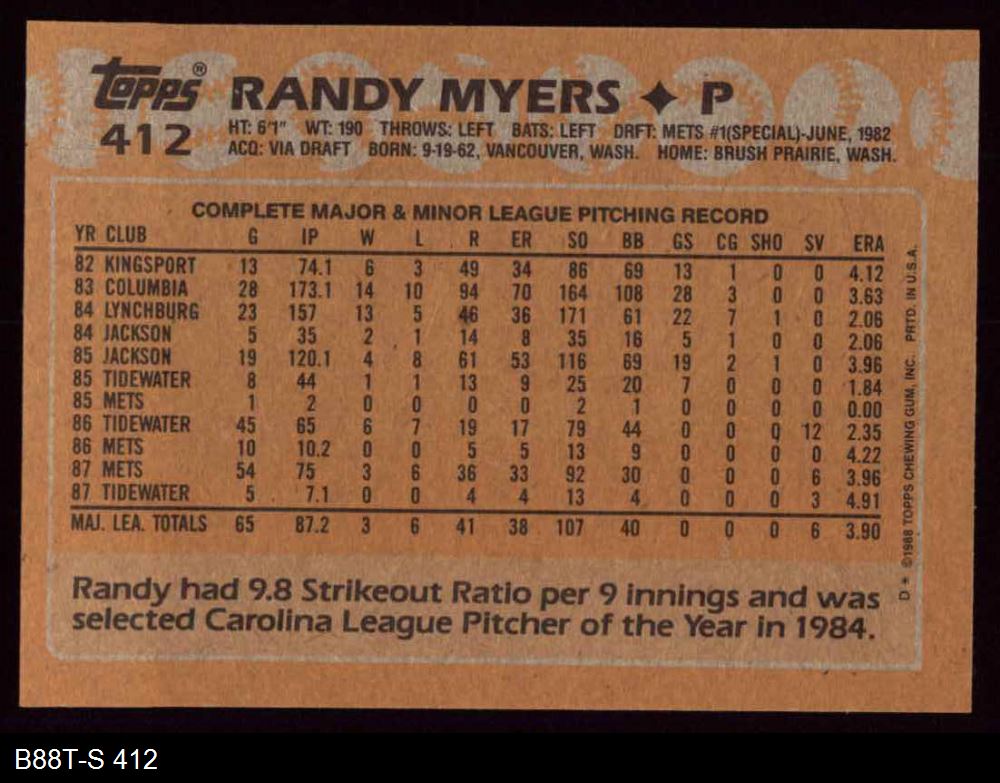 1988 Topps #412 Randy Myers