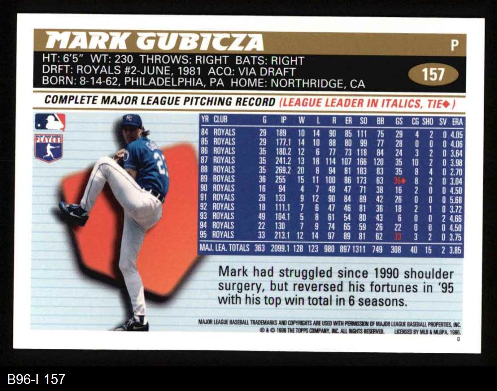 1996 Topps #157 Mark Gubicza 8 - NM/MT