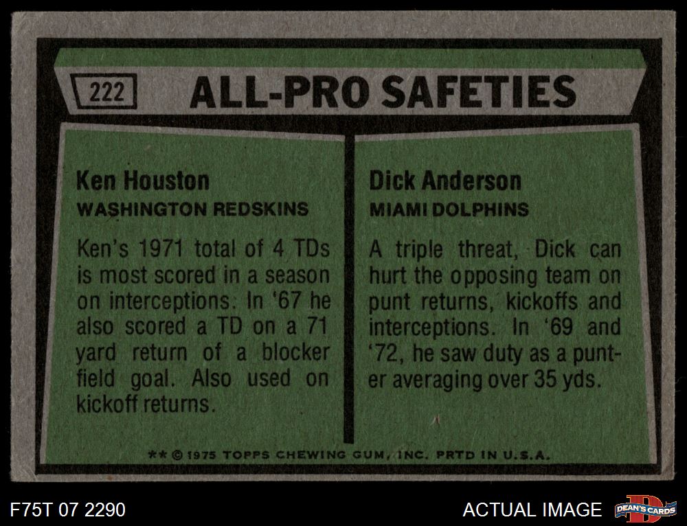 1975 Topps #222 All-Pro Safeties
