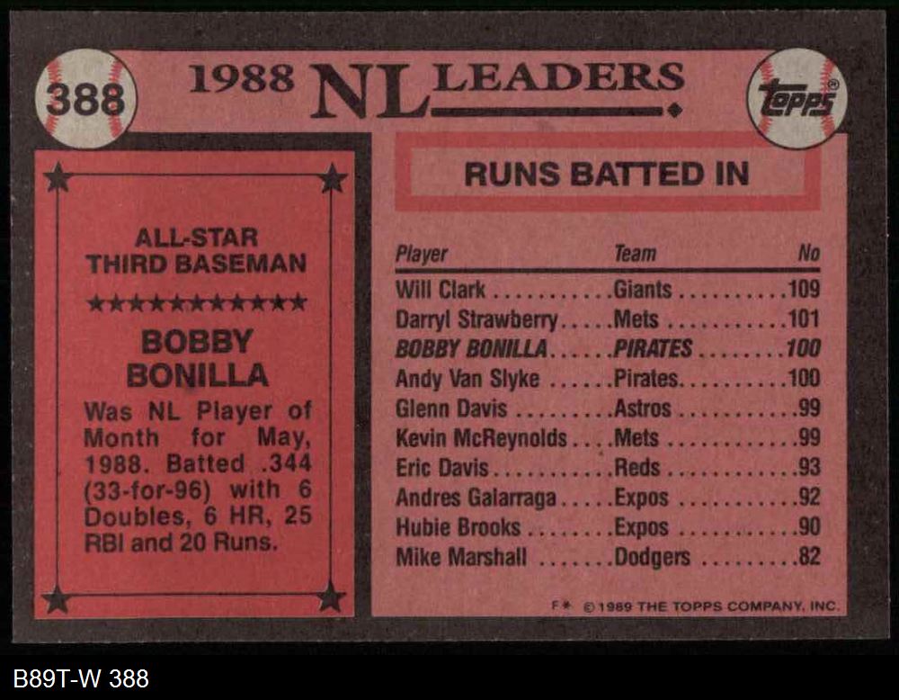 1989 Topps #388 - Bobby Bonilla All-Star 8 - NM/MT