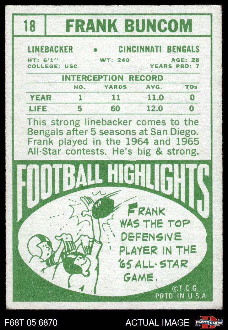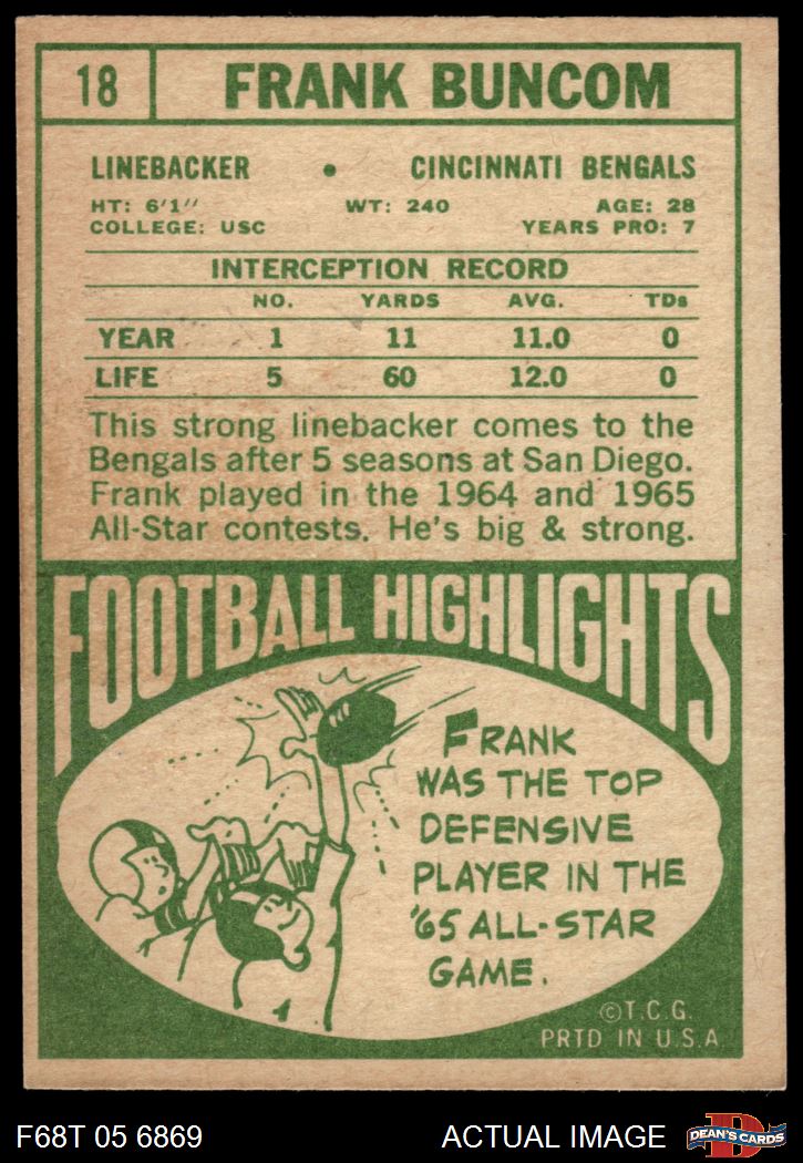 1968 Topps Football Cards (2,556 available)1968 Topps Bengals (100 available)