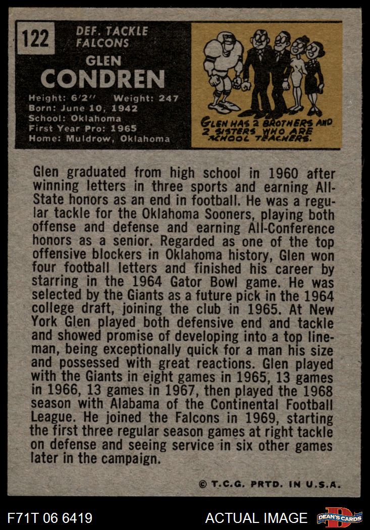 1971 Topps #122 Glen Condren 6 - EX/MT