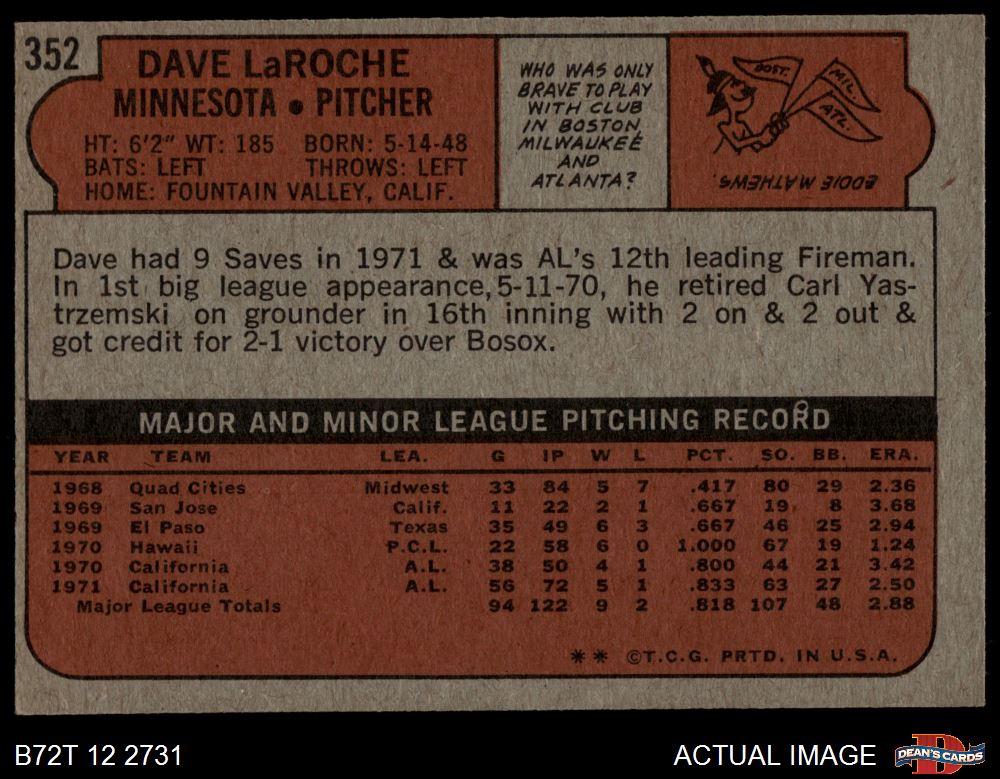 1972 Topps #352 Dave LaRoche 4 - VG/EX