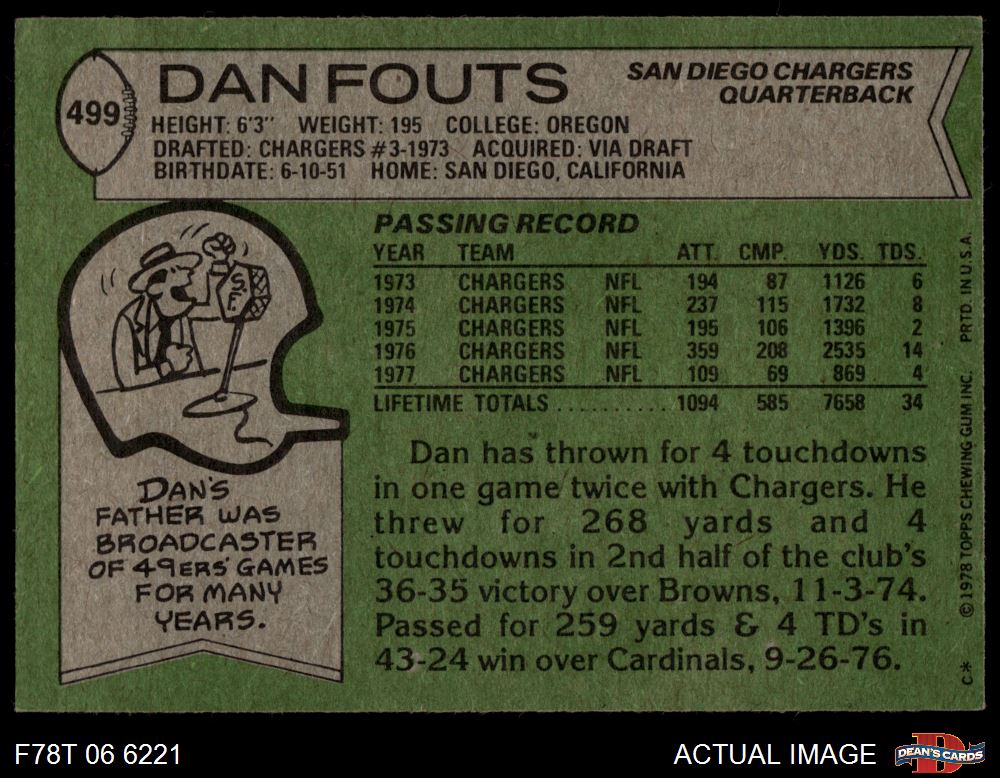 1978 Topps #499 Dan Fouts