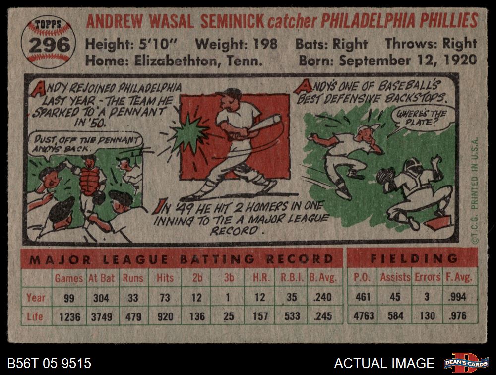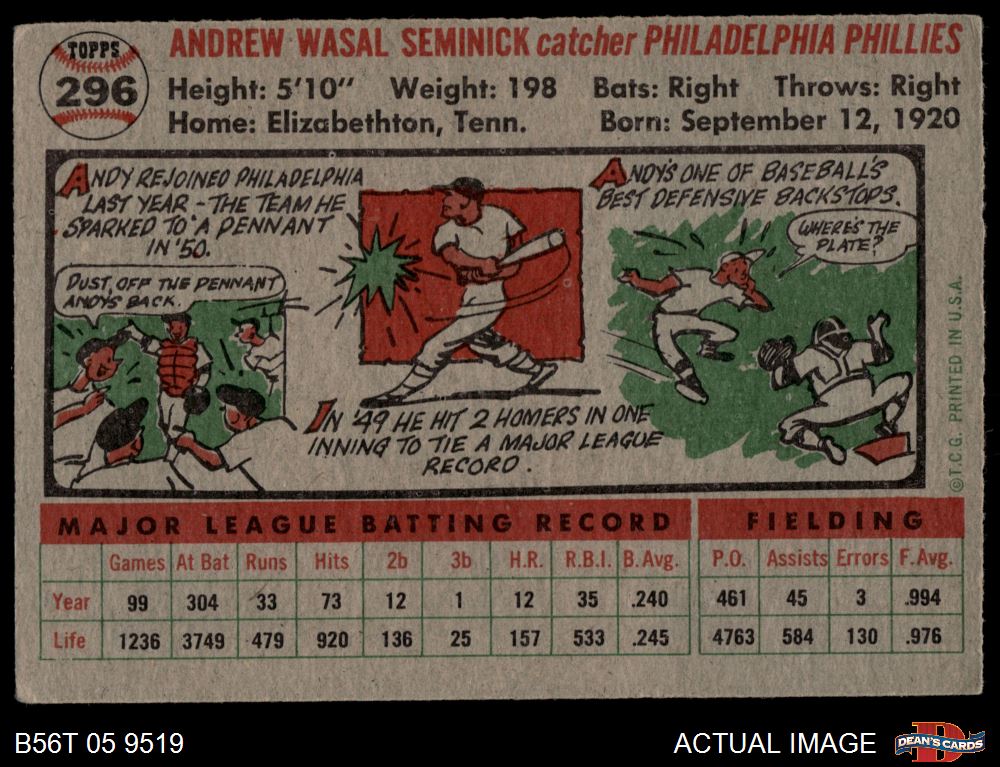 1956 Topps #296 Andy Seminick 4 - VG/EX