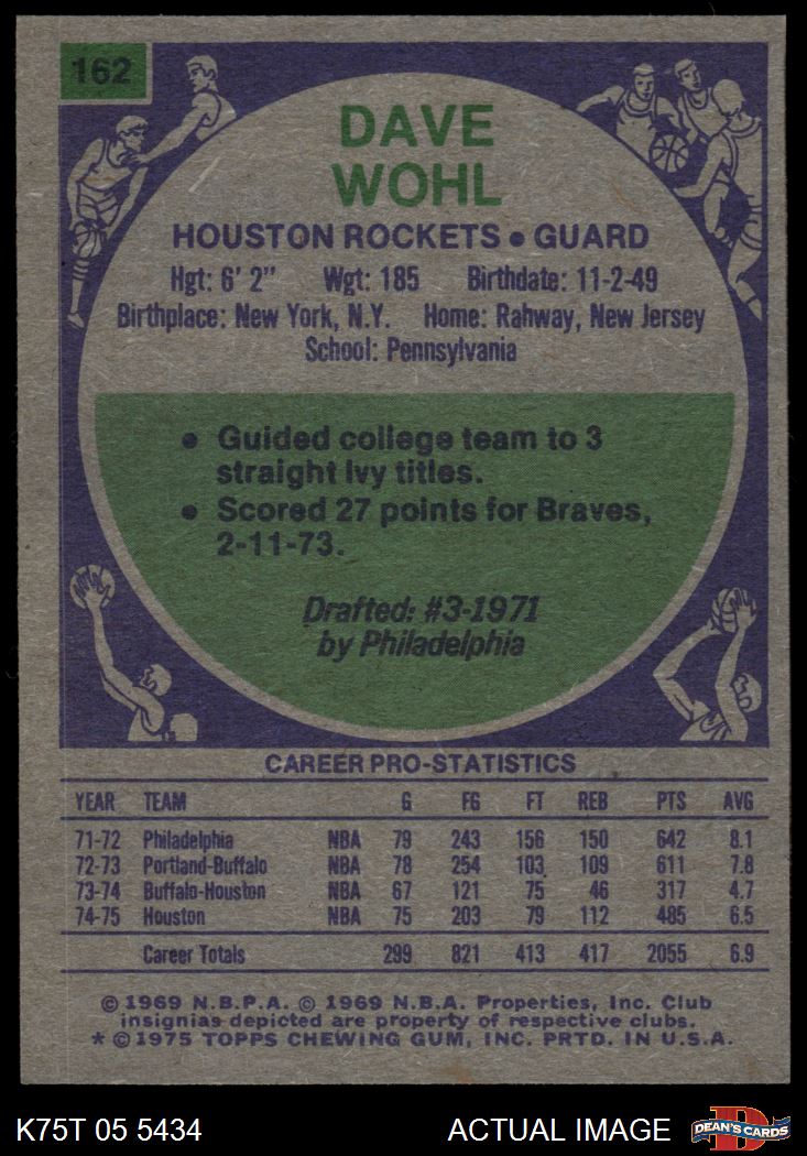 1975 Topps #162 Dave Wohl 8 - NM/MT