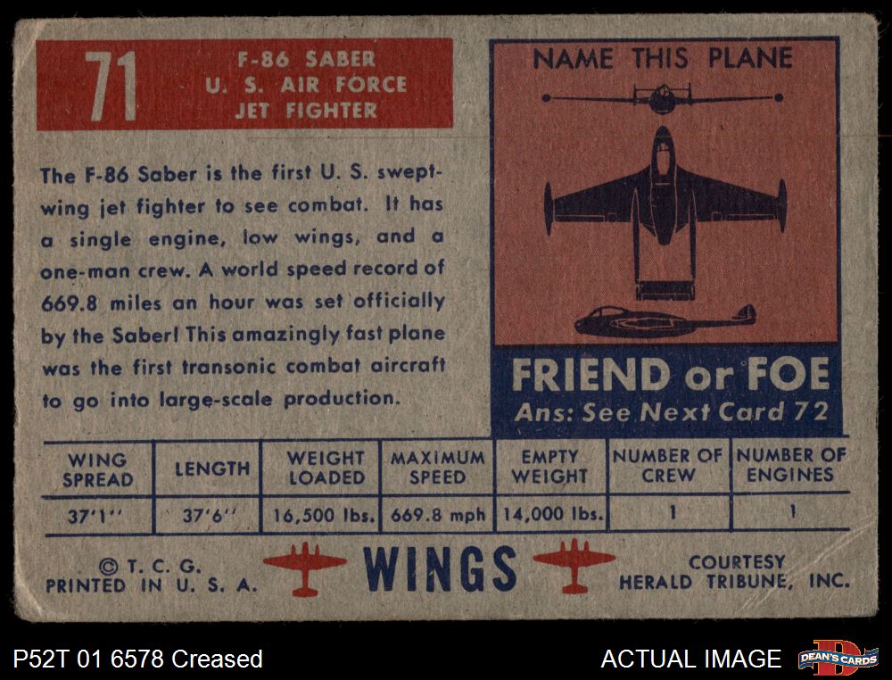 1952 Topps Wings #71 F-86 Saber 2 - GOOD