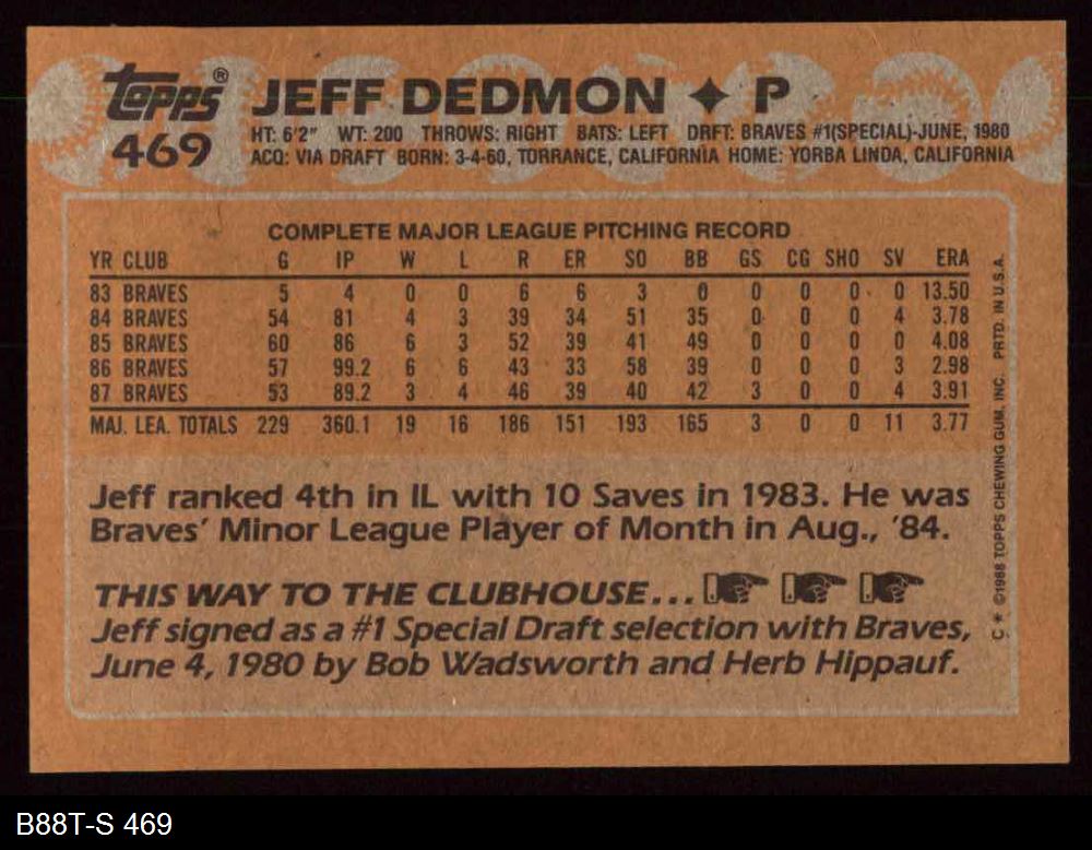 1988 Topps #469 Jeff Dedmon 8 - NM/MT