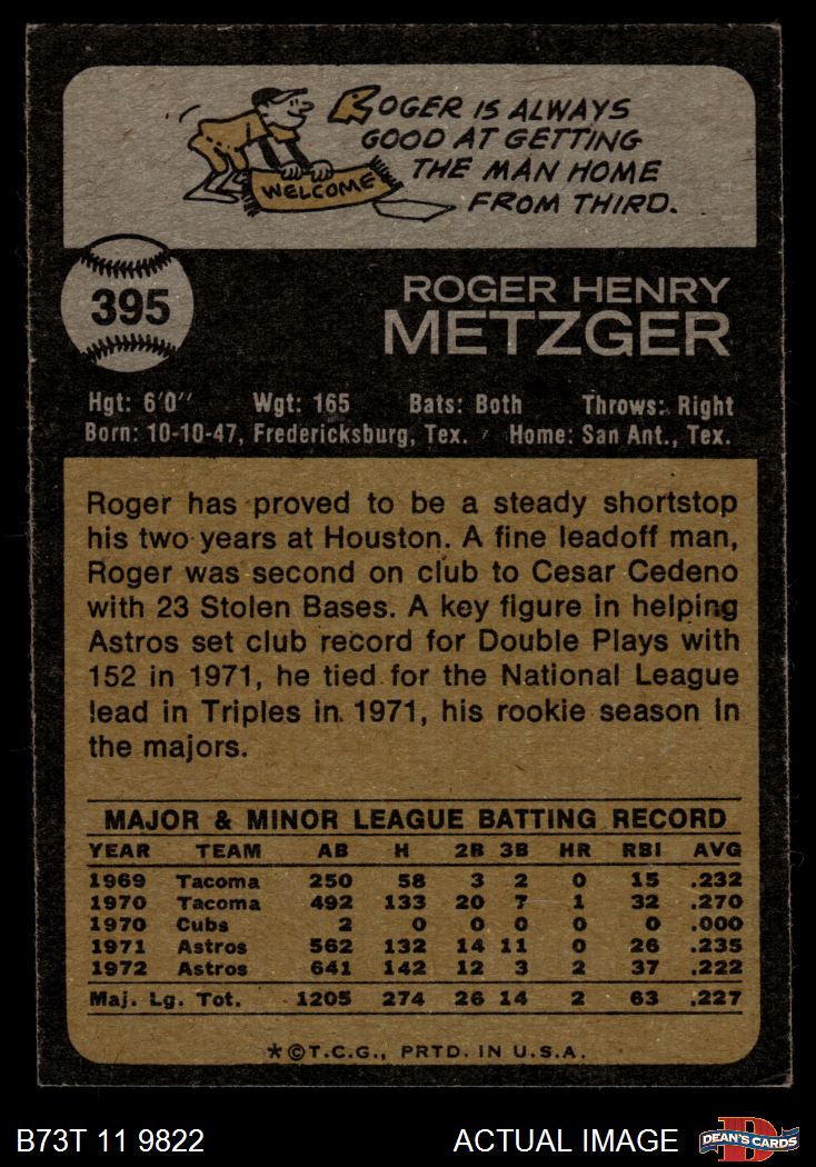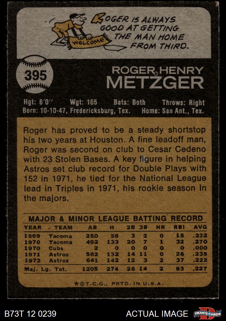 1973 Topps #395 Roger Metzger 4 - VG/EX