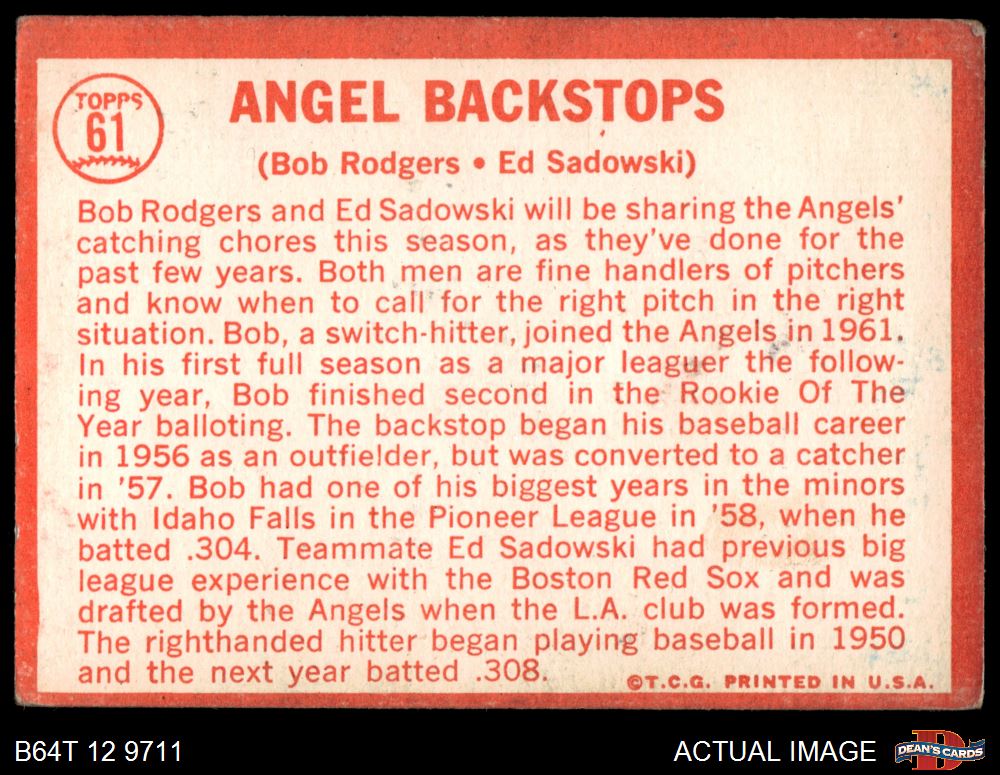 1964 Topps #61 Angels Backstops