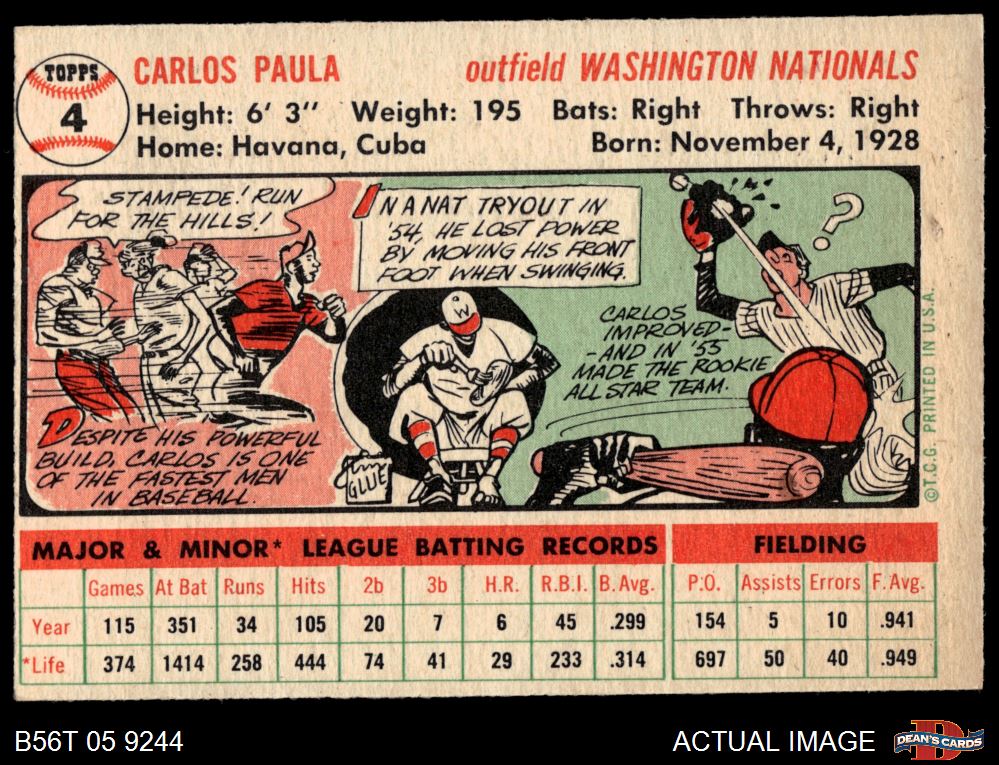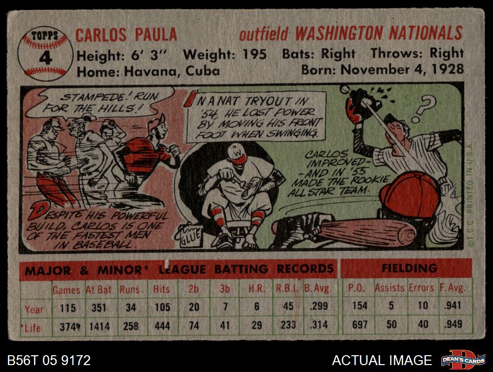 1956 Topps #4 Carlos Paula