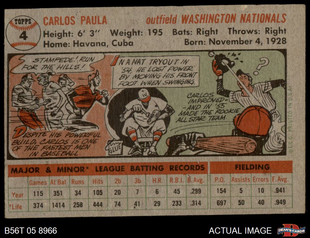 1956 Topps #4 Carlos Paula 2 - GOOD