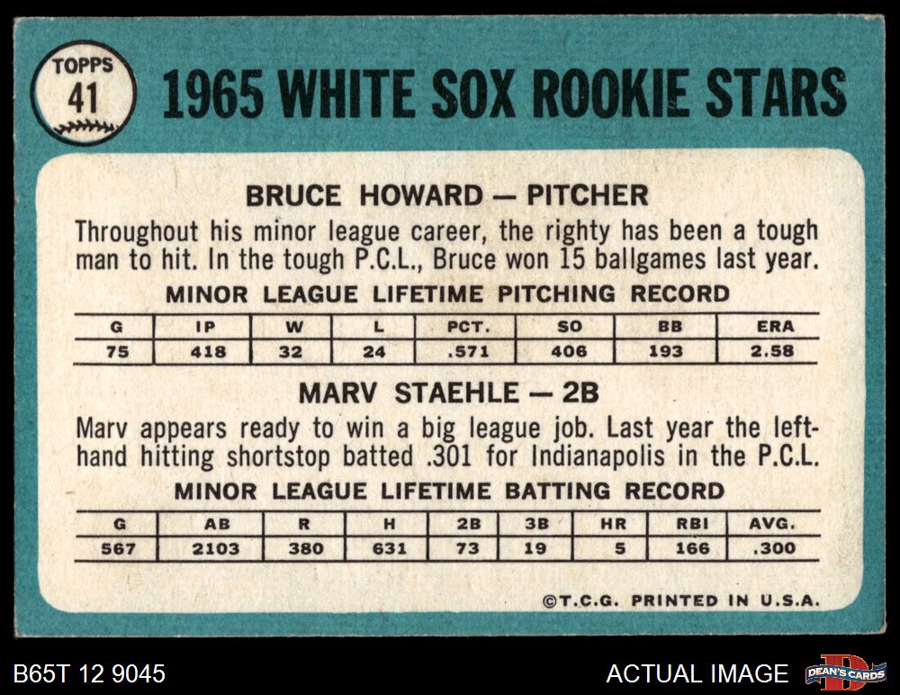 1965 Topps #41 - Bruce Howard / Marv Staehle White Sox Rookies 3.5 - VG+