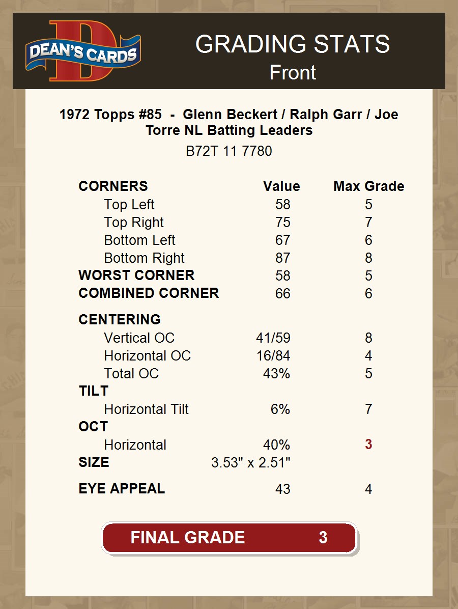 1972 Topps #85 - Glenn Beckert / Ralph Garr / Joe Torre NL Batting Leaders 3 - VG