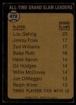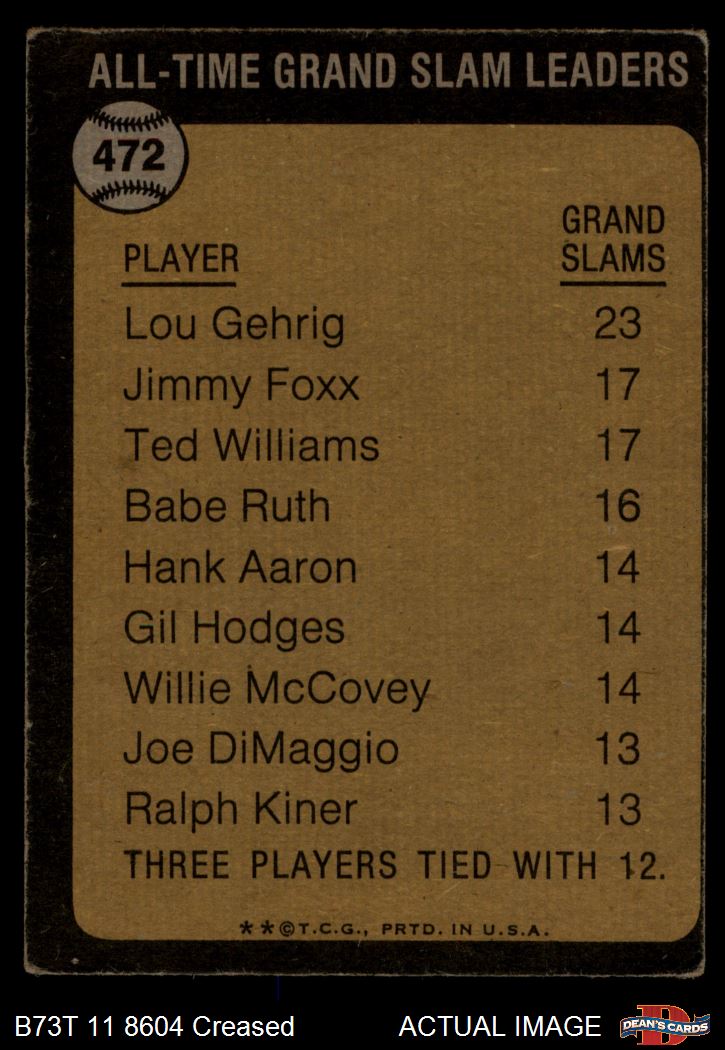 1973 Topps #472 - Lou Gehrig All-Time Grand Slam Leader 2 - GOOD