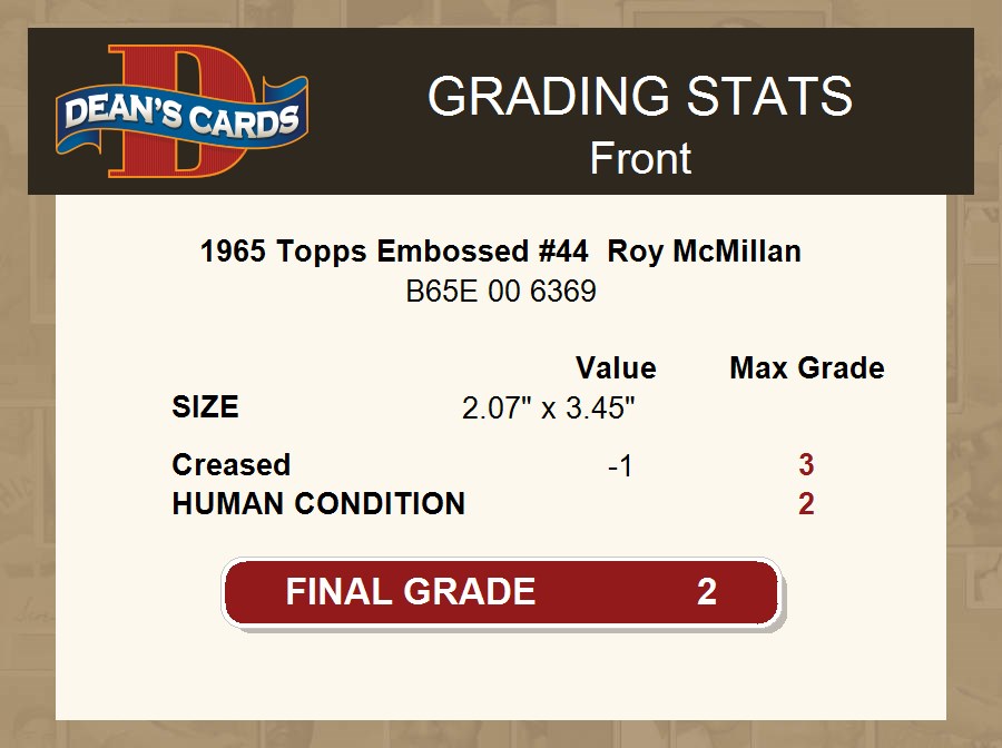 1965 Topps Embossed #44 Roy McMillan 2 - GOOD