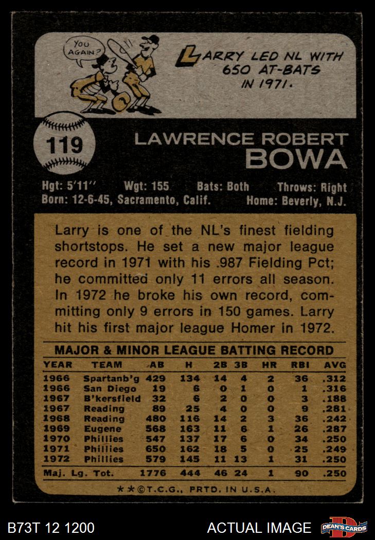 1973 Topps #119 Larry Bowa 4 - VG/EX