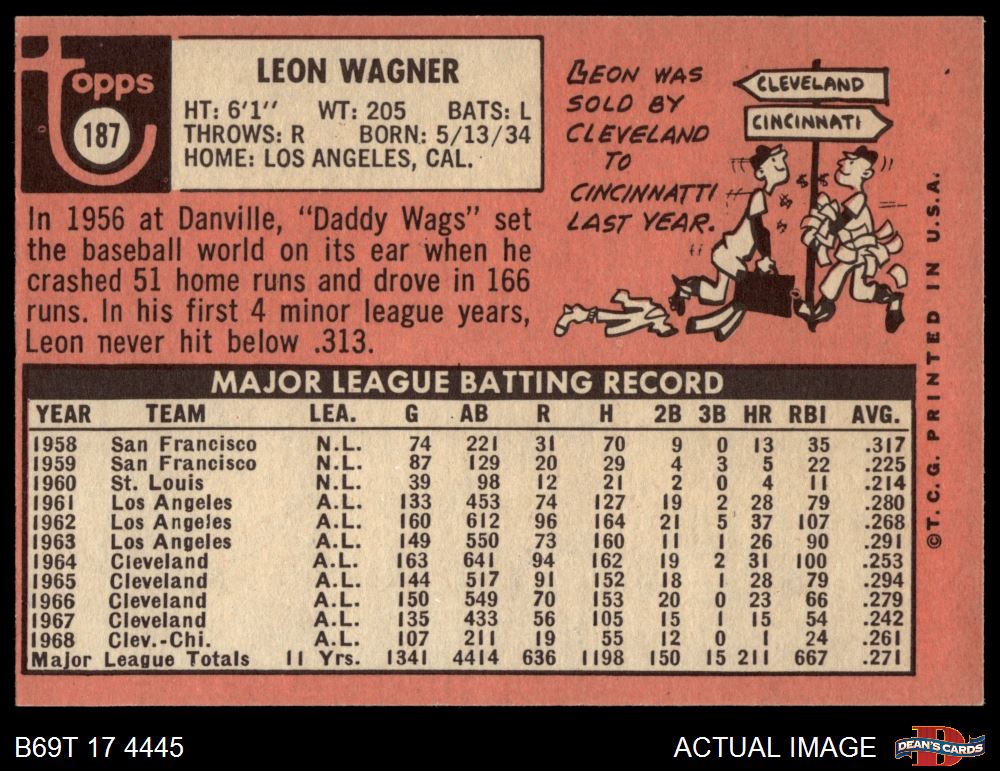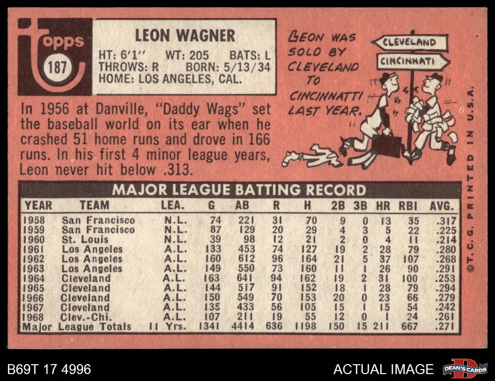 1969 Topps #187 Leon Wagner 4 - VG/EX