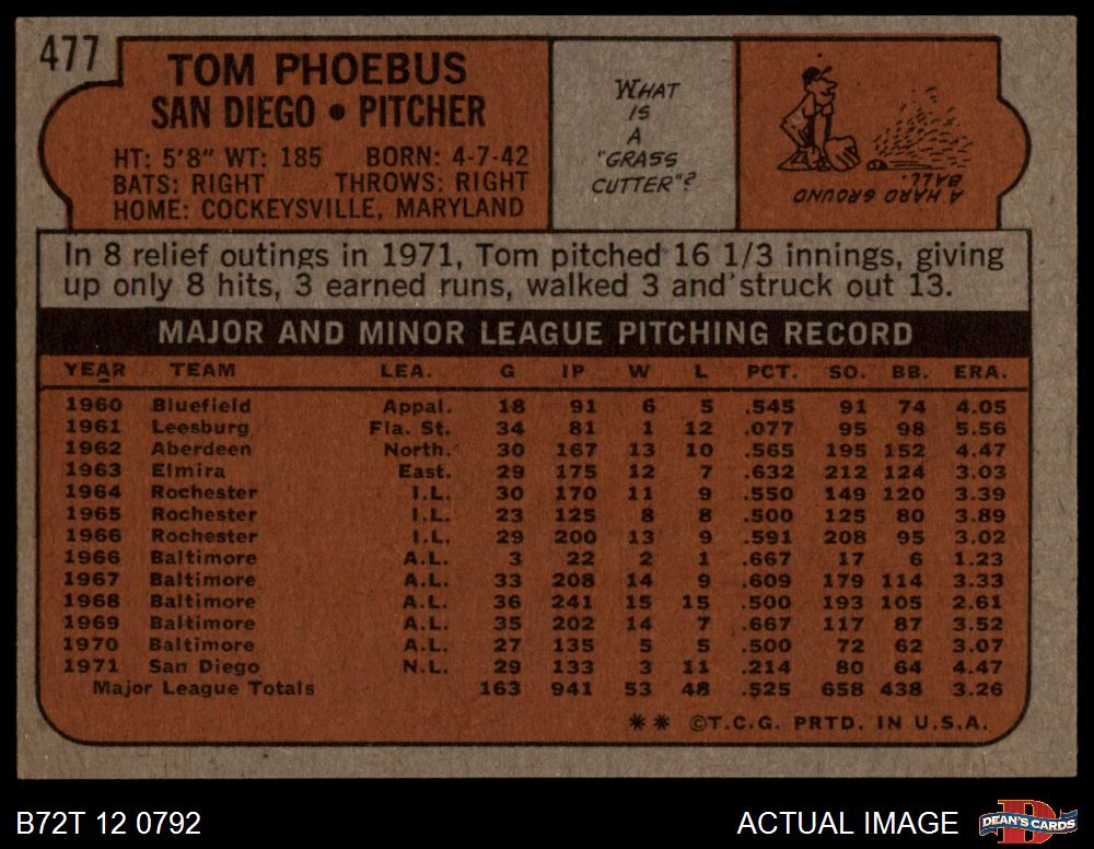 1972 Topps #477 Tom Phoebus 6 - EX/MT