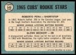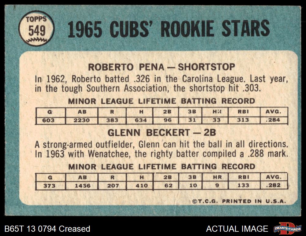 1965 Topps #549 - Glenn Beckert / Roberto Pena Cubs Rookies 3 - VG