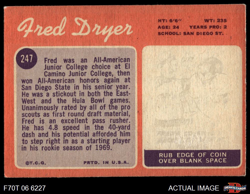 1970 Topps #247 Fred Dryer 2 - GOOD