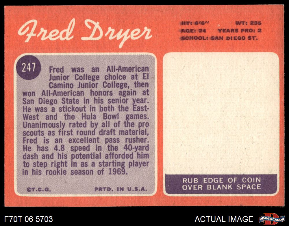 1970 Topps #247 Fred Dryer 6.5 - EX/MT+