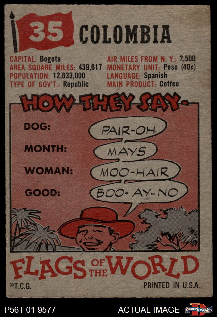 1956 Topps Flags of the World #35 Colombia 3 - VG