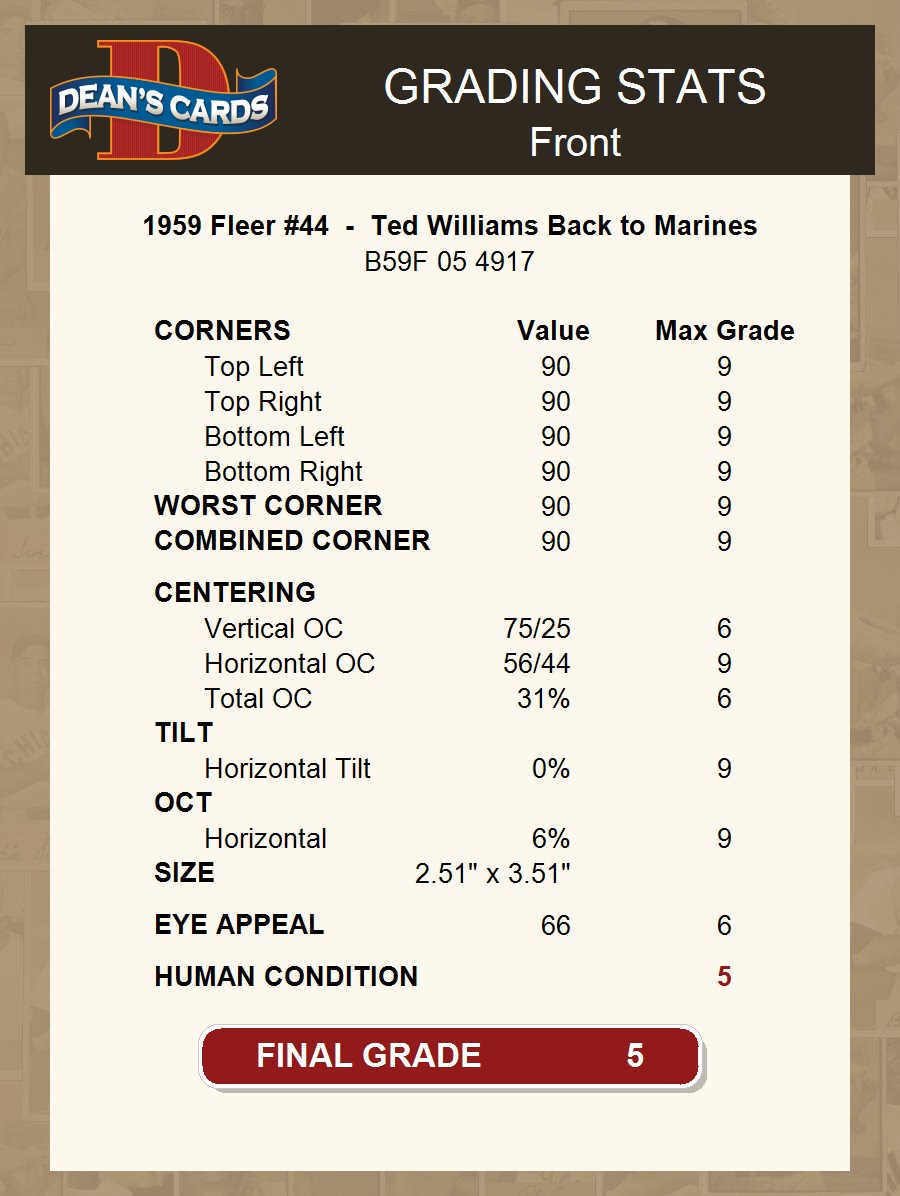 1959 Fleer #44 - Ted Williams Back to Marines 5 - EX