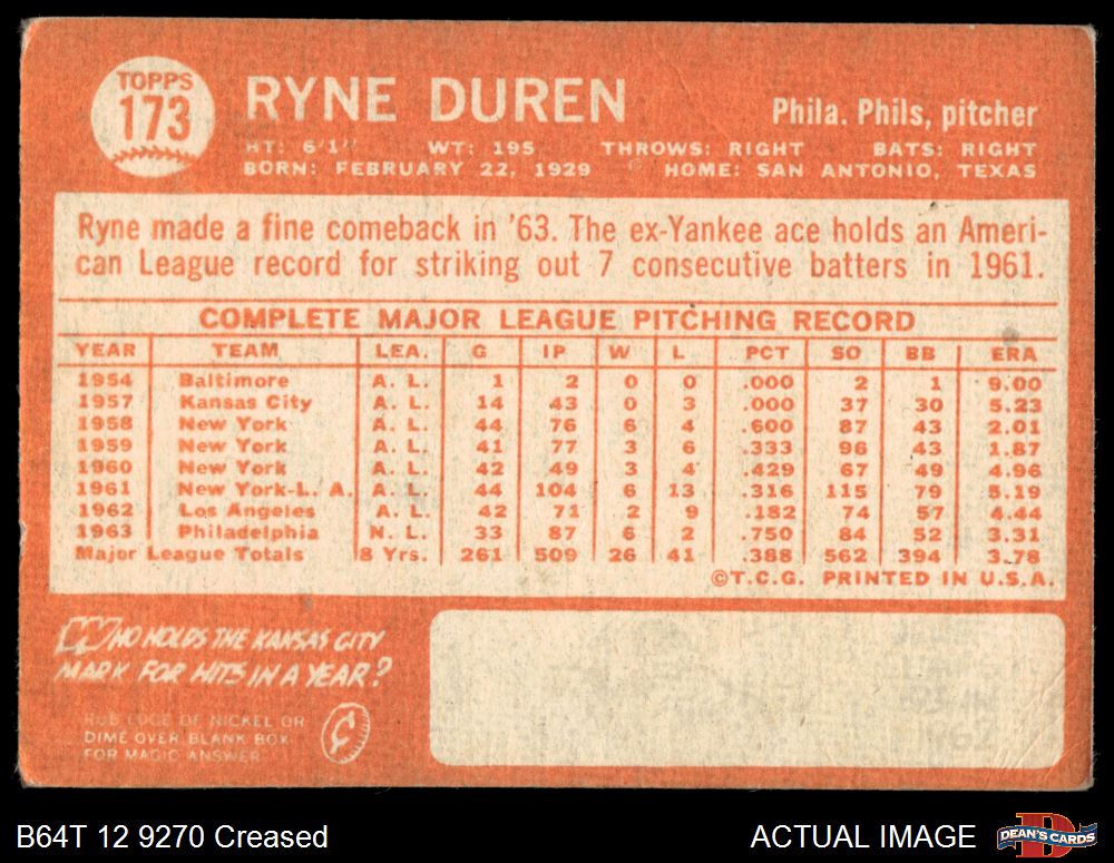 1964 Topps #173 Ryne Duren 2 - GOOD