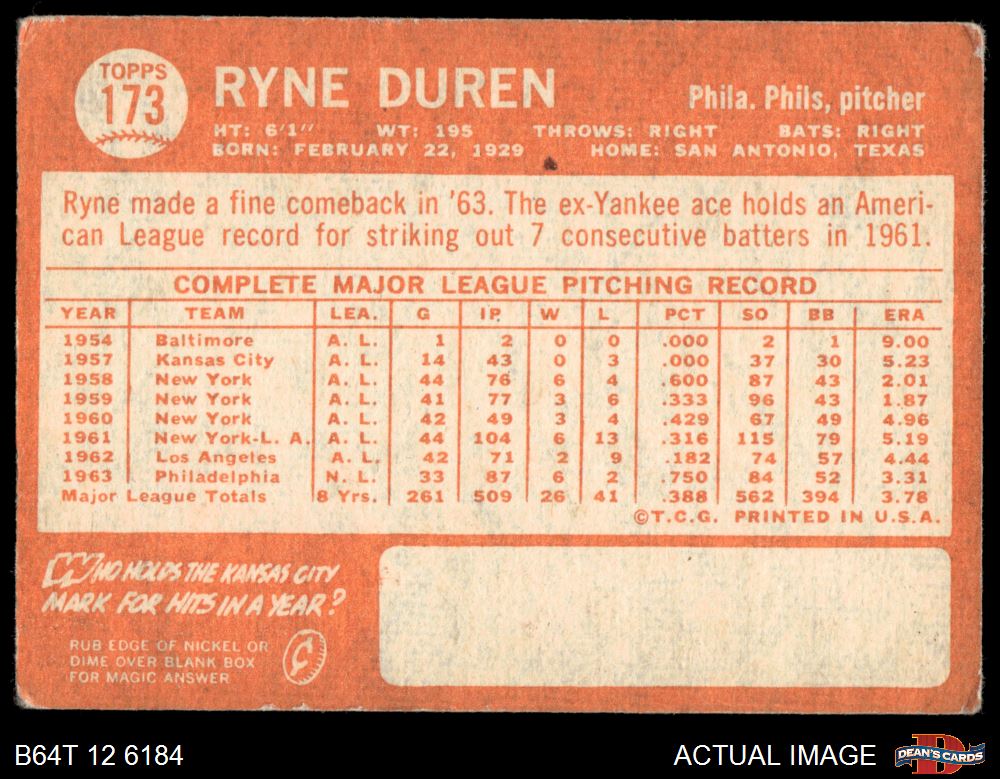 1964 Topps #173 Ryne Duren 2.5 - GD+
