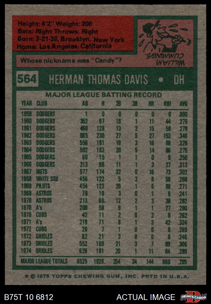 1975 Topps #564 Tommy Davis 3 - VG
