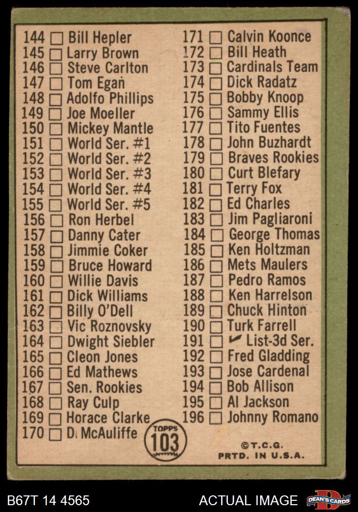 1967 Topps Baseball Cards (12,503 available)1967 Topps Yankees (547 available)