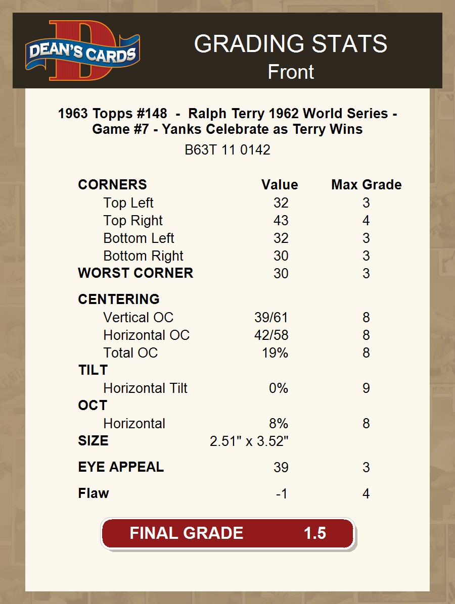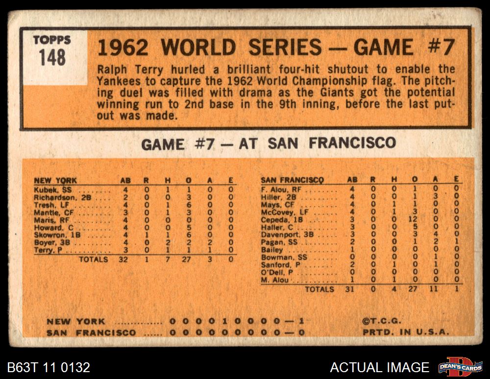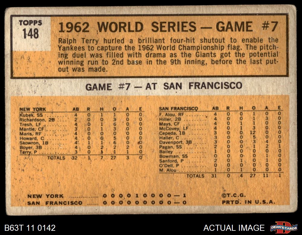 1963 Topps #148 - Ralph Terry 1962 World Series - Game #7 - Yanks Celebrate as Terry Wins 1.5 - FAIR