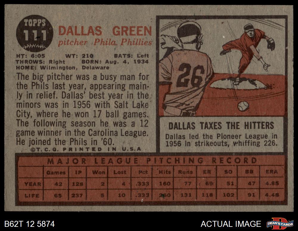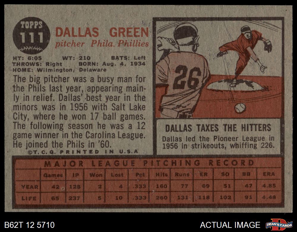 1962 Topps #111 NRM Dallas Green 1.5 - FAIR