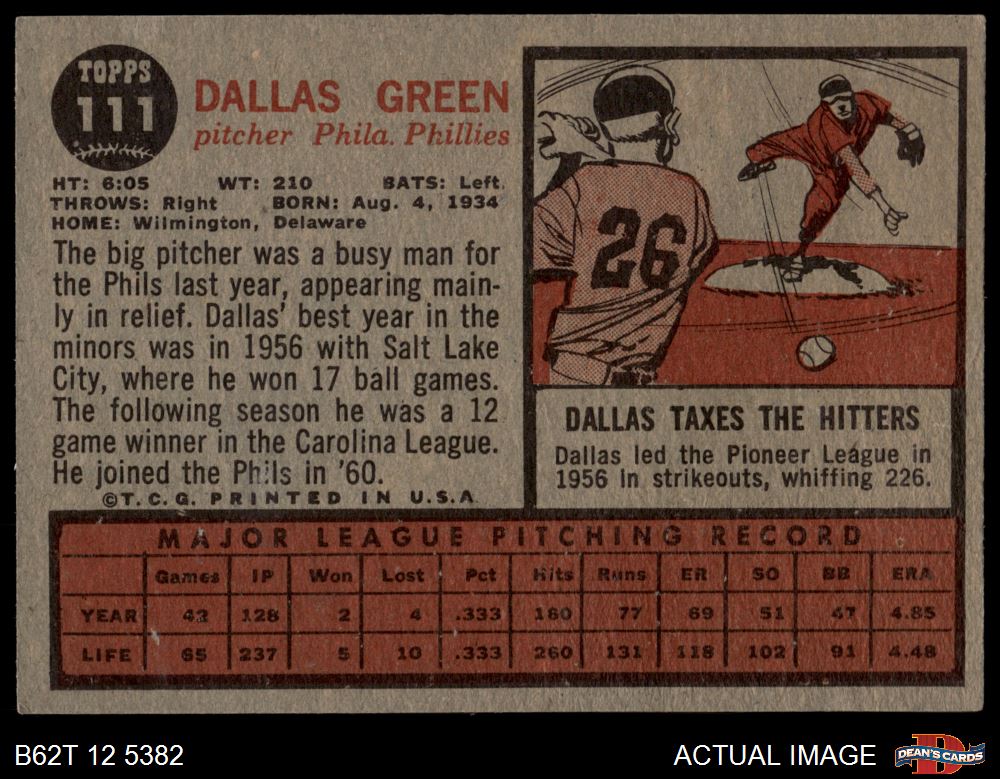 1962 Topps #111 NRM Dallas Green 3 - VG