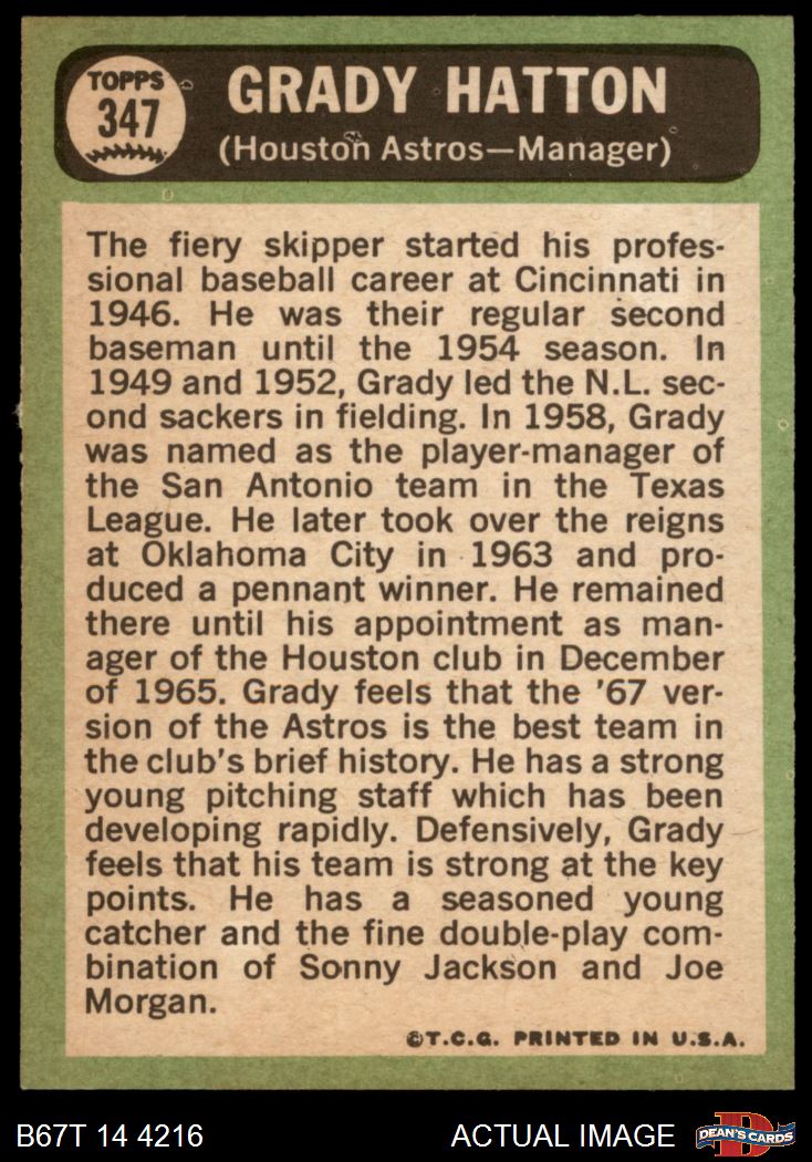 1967 Topps #347 Grady Hatton 7.5 - NM+