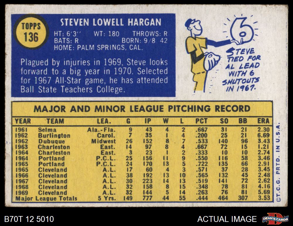1970 Topps #136 Steve Hargan 4 - VG/EX