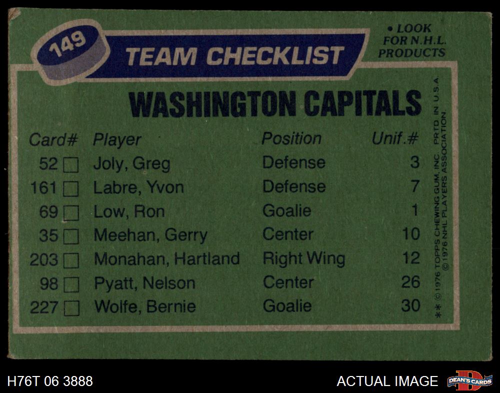 1976 Topps #149 Capitals Team