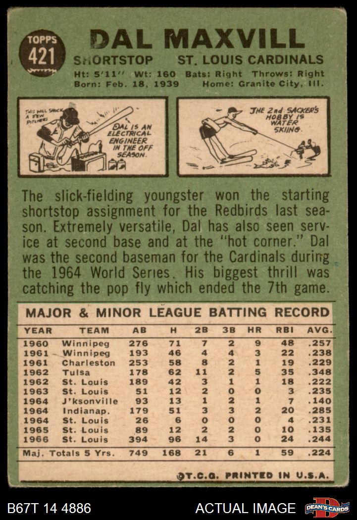 1967 Topps #421 Dal Maxvill 1 - POOR