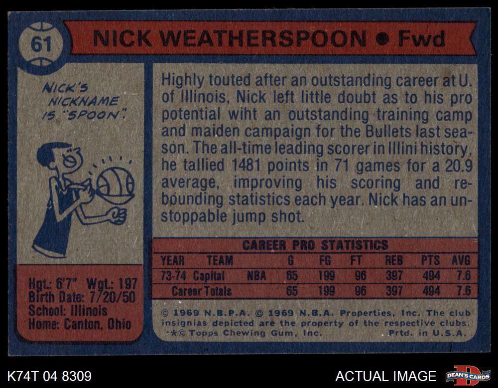 1974 Topps #61 Nick Weatherspoon 6.5 - EX/MT+