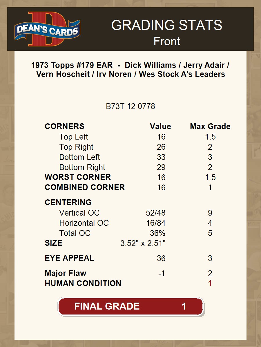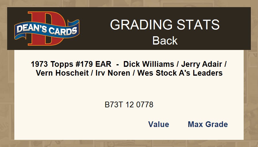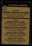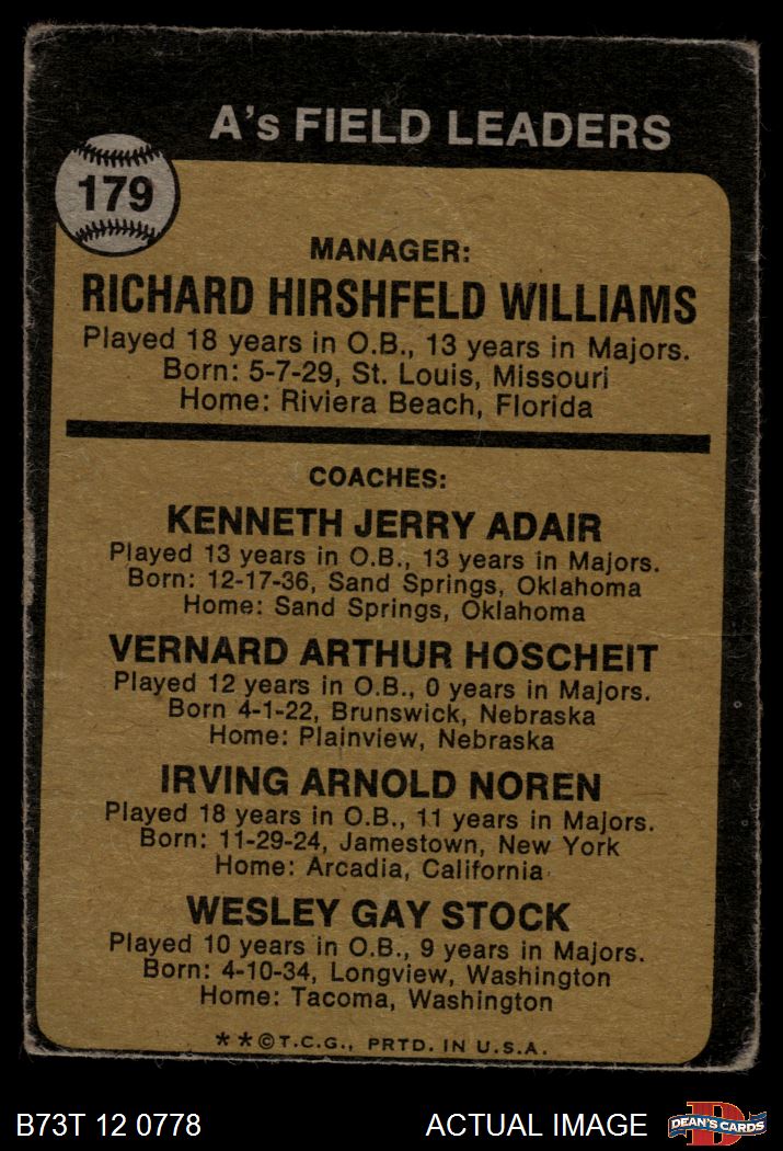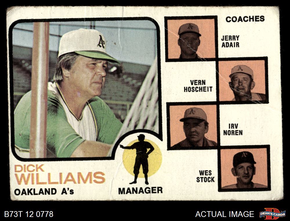 1973 Topps #179 EAR - Dick Williams / Jerry Adair / Vern Hoscheit / Irv Noren / Wes Stock A's Leaders 1 - POOR