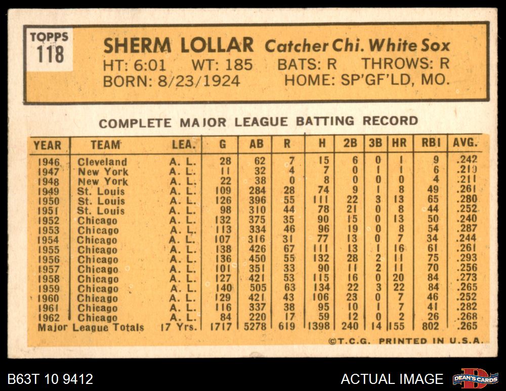 1963 Topps #118 Sherm Lollar Front Thumbnail